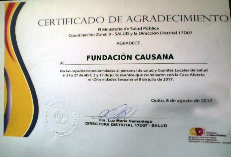 Talleres de información y capacitación con servidoras y servidores del Ministerio de Salud del Ecuador, es una labor permanete de Causana que busca que el derecho a la salud sea respetuosa de las identidades y tome en cuenta sus especificidades. Â